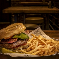 Crispy Bacon, Cheddar Cheese, Fresh Sliced Avocado, Lettuce, Tomato and Onion Ring with Mayo